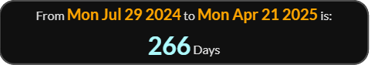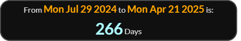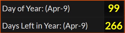 April 9 is DAY 99 leaving 266.