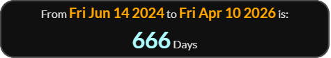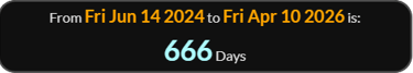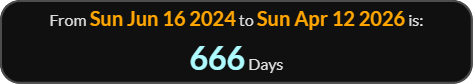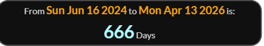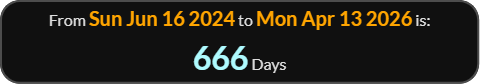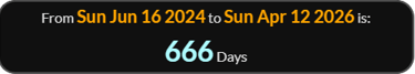 The calculation equates to 666 , with both methods of counting durations, including or not including the end date)