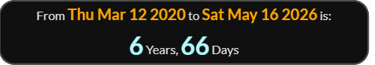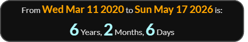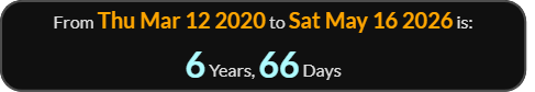 The duration between that exact mid point and the prayer re-dedication day , May 17 2026 is : EXACTLY 66 months 0 days.