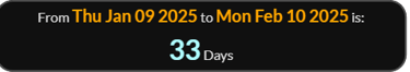 The 33 days is still there if the End Date is Included.