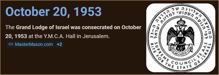 The Grand Lodge of Israel was consecrated, October 20, 1953,