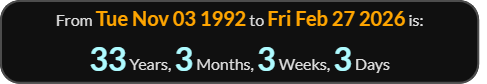The 33 days is still there if the End Date is Included.