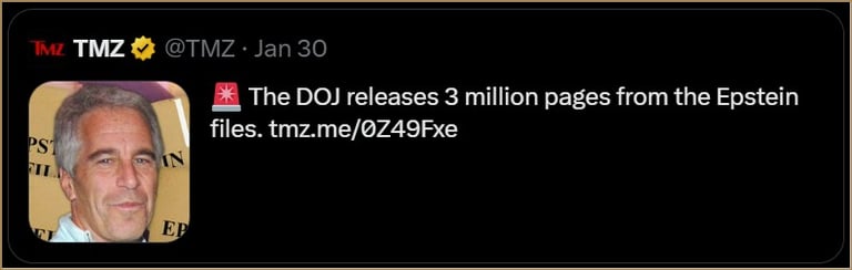 3 Million Epstein File Pages Released, causing a media frenzy January 30, 2026