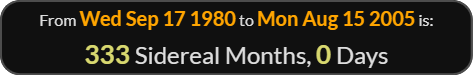 At that date she was 333 sidereal months old (= 9099 days old.)