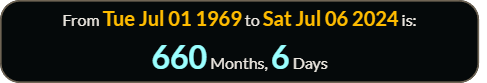 660months 6 days after the Investiture of Charles, Prince of Wales (July 1, 1969)