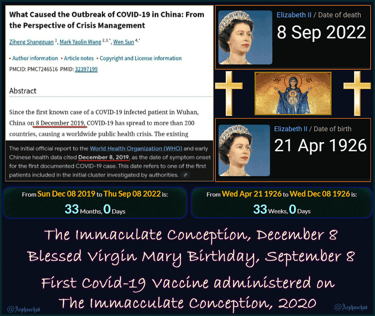 First Covid 19 Vaccine U.K. December 8, 2020 (The Date of the Immaculate C)onception
