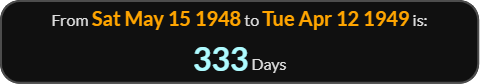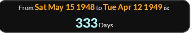 333 days are between this birth and the Total Lunar Eclipse April 13, 1949