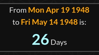 It is 201 days after May 14, 1947, which is exactly one year before modern Israel was born.