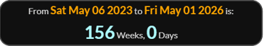 this falls exactly 156 weeks 0 days after Charles III Coronation.