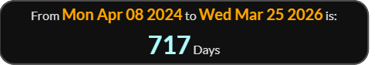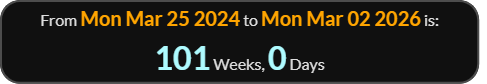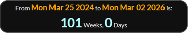 April 8, 2024 is 99 weeks [0 days] before Purim 2026 [March2/3/2026]