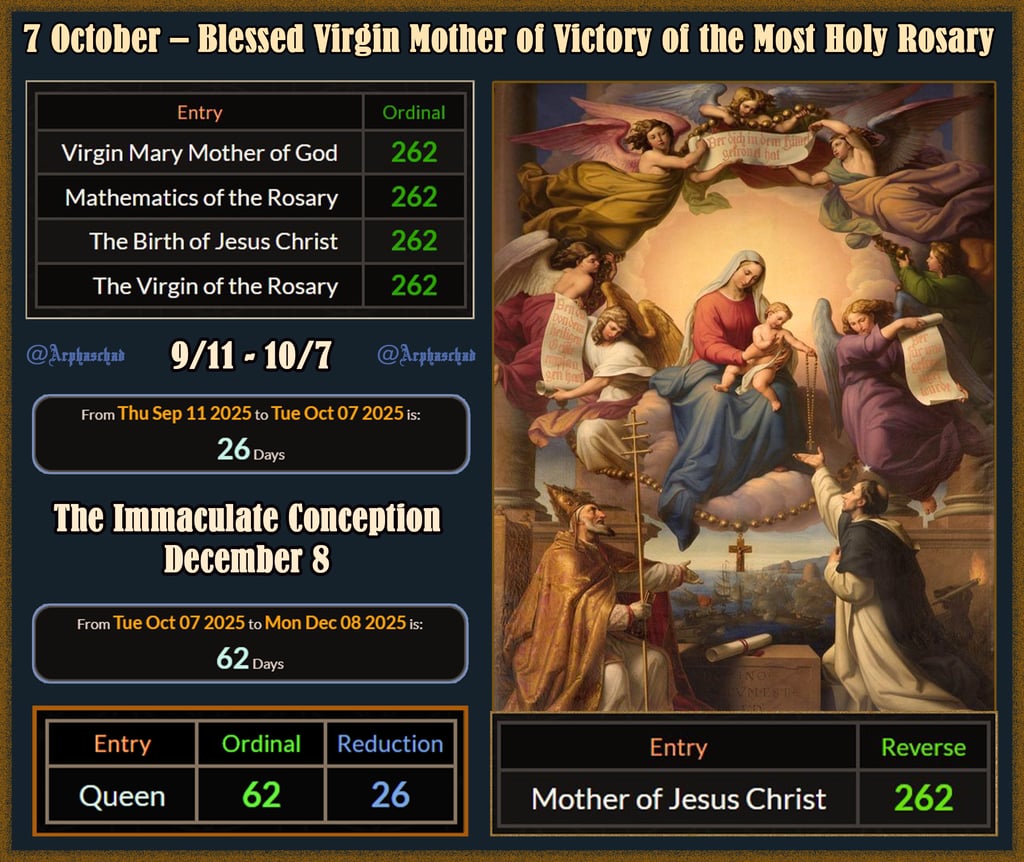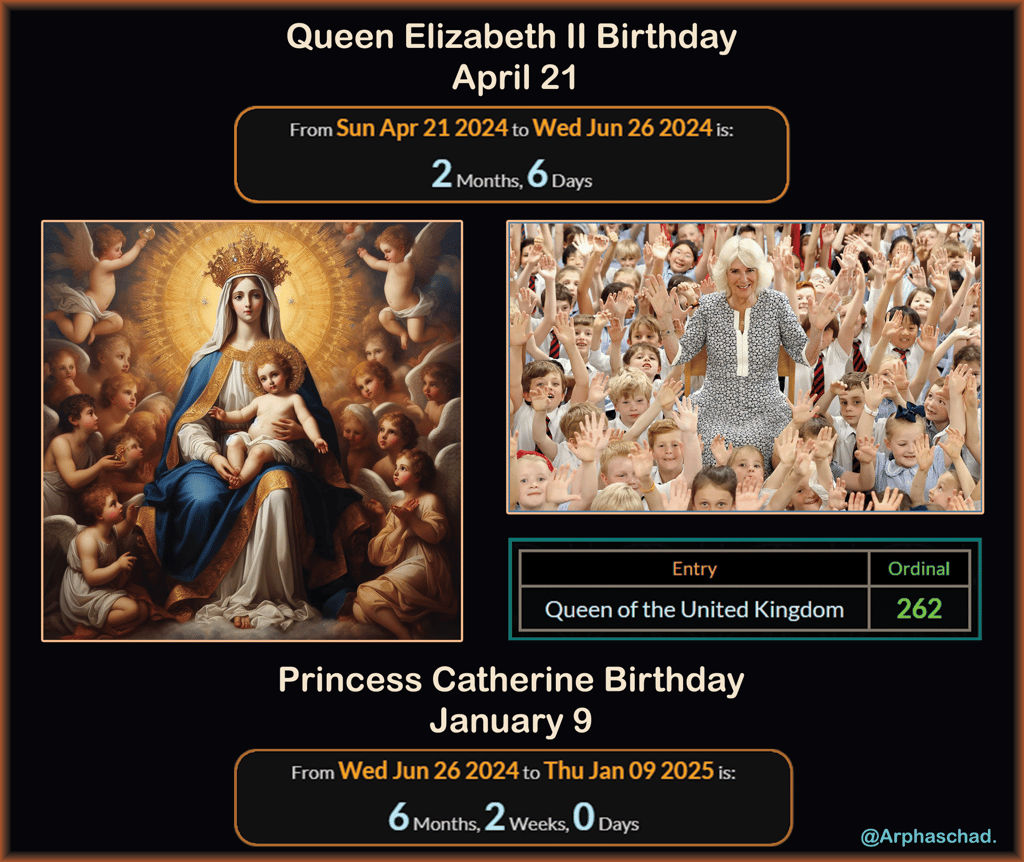 "Queen" = 26/62 [reduction/ordinal] funeral on Sep 19 - day 262.