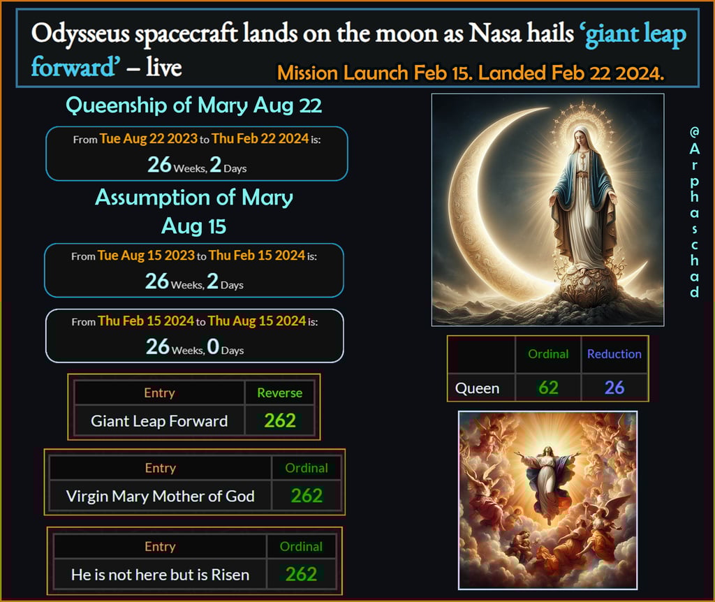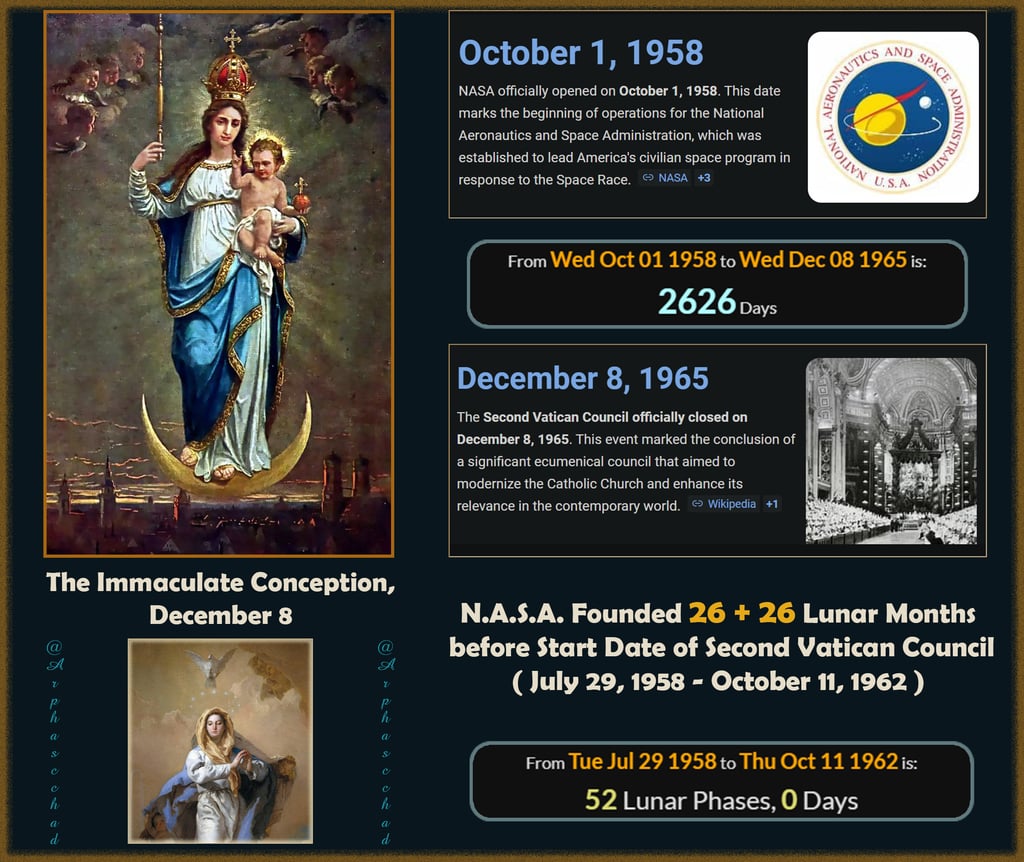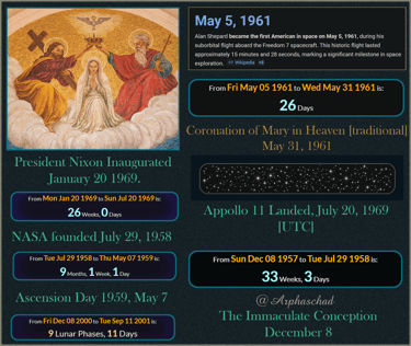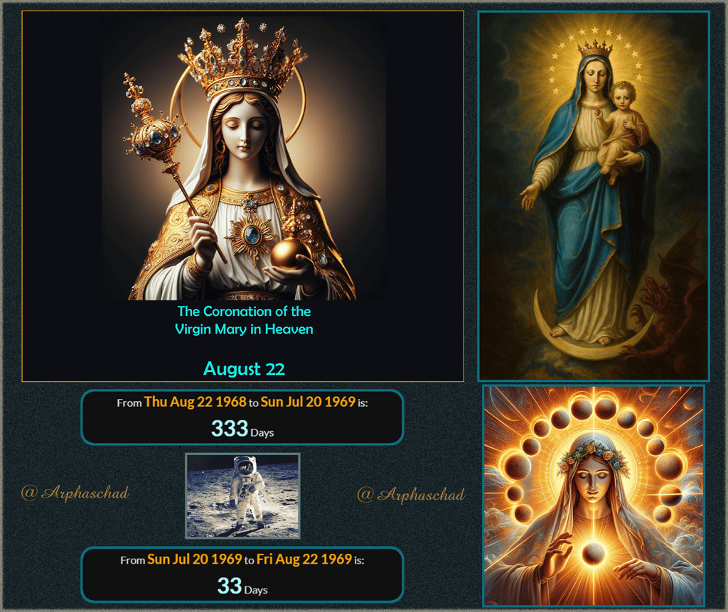 The first moon landing was exactly on the date starting the 33rd week after The Immaculate Conception 1968.