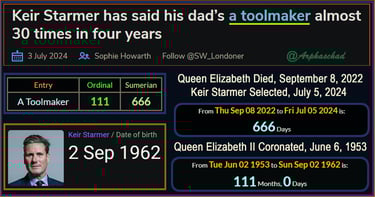 Keir Starmer was Elected 666 days after Queen Elizabeth II died , which is therefore the 666th day of the Reign of King Charles III