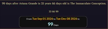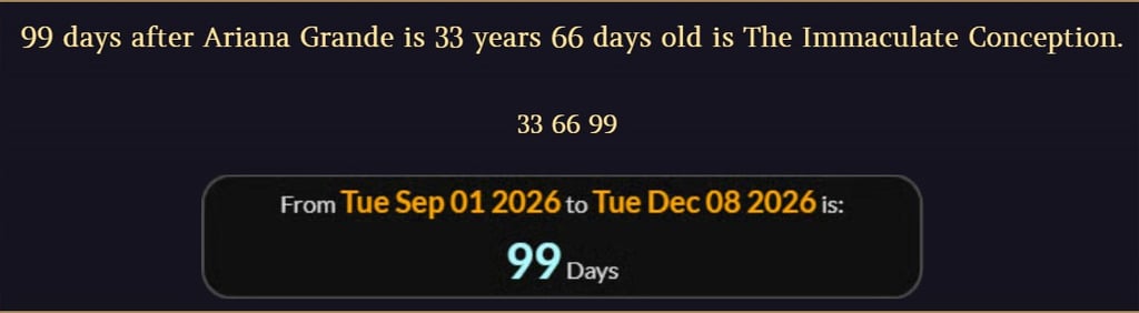99 days after Ariana Grande is 33 years 66 days old is The Immaculate Conception.
