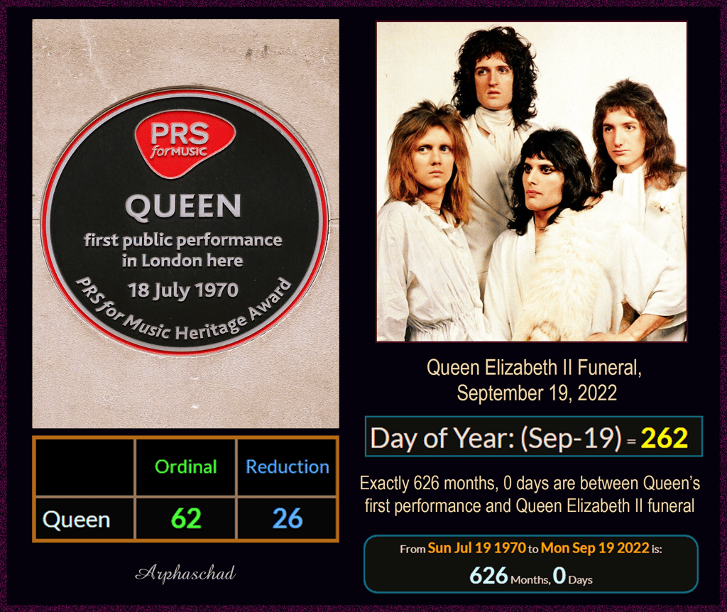Queen Elizabeth II died in the 911th minute of the Virgin Mary's Birthday, September 8, 2022, 911 Saturnian Days before the start of Madonna's CELEBRATION Tour