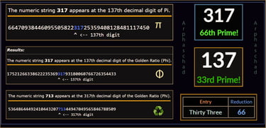 317 is at position 137 of both Pi and Φ (Golden Ratio)