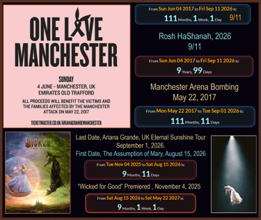 The tour ends 111 months 11 days after Manchester Arena Bombing .