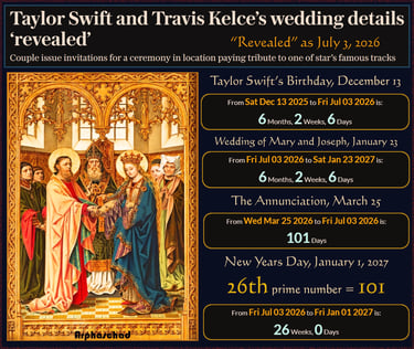 "coincidentally" is exactly 26 weeks, 0 days after after the birthday of Mary the Mother of Jesus, September 8.