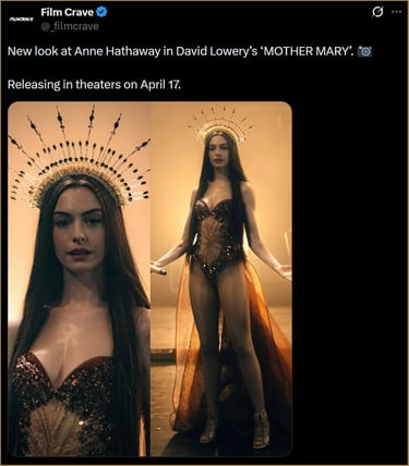 Hathaway’s character, Mother Mary, is Lowery’s vision for what a Taylor Swift–like figure would be in the future. He added, “I definitely brought a lot of Taylor Swift to the table in terms of who Mother Mary was.