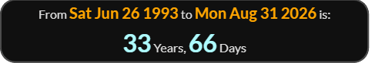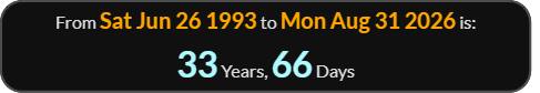 The album is out 33 months 3 weeks 0 days after her 33rd birthday.