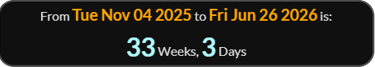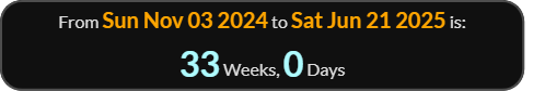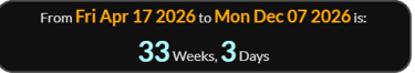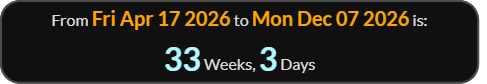 The premiere is 33 weeks 3 days to the Vigil of the Immaculate Conception.