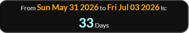July 3 is 33 days after this.