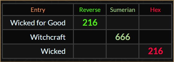 "Wicked for Good" = 216 [reverse ordinal]