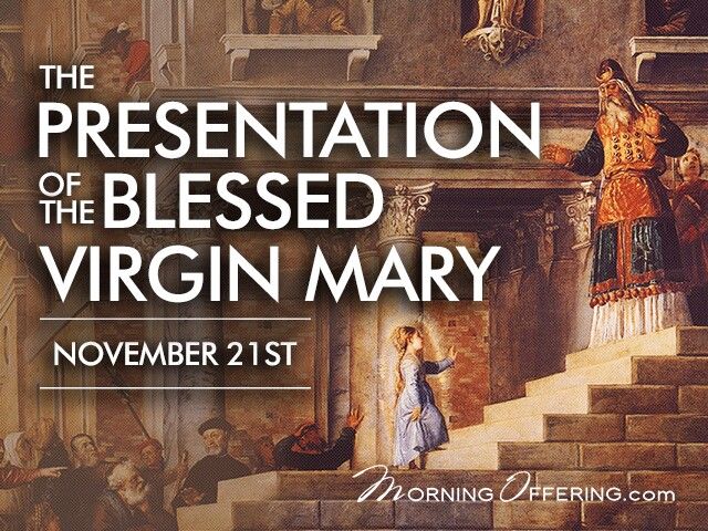 November 21 is the the The Feast of the Presentation of the Blessed Virgin Mary — also called the Entry of the Most Holy Theotokos into the Temple