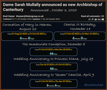 This Announcement is 6 days to the 66th week from the 666 th day of the Reign of Charles III.