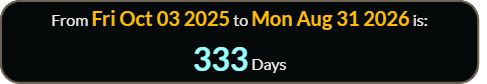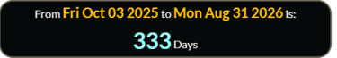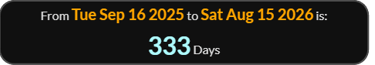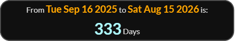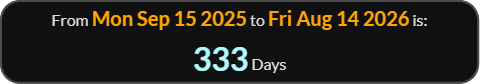 Sep 15, is 333 days to the Vigil of the Assumption of Mary 2026 and 33 days after it 2025.