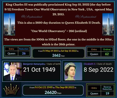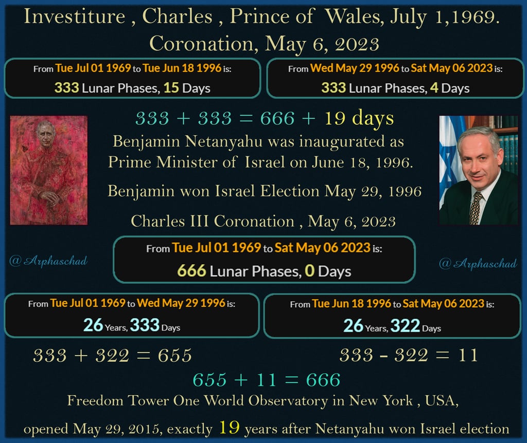 Exactly 19 years 0 days between Netanyahu winning Israel Election and opening of One World Observatory on Freedom Tower, New York. Of course it was built as a result of 9/11.