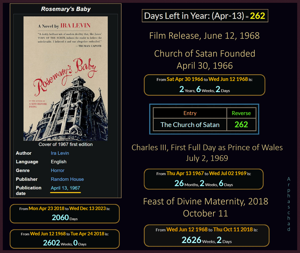 He was photographed on this date with his mother wearing a Rosemary's Baby Film costume.