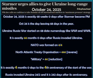 This news is 137 [33rdPrime] days before NATO's 76th Anniversary on 4/4, 137 days after Starmers selection on the 666th day of Charles III reign, 4 days after Charles III's 76 birthday at the same time Donald Trump in news as he is first Republican President to surpass 76M votes.