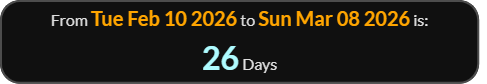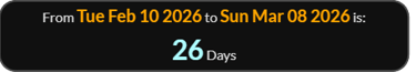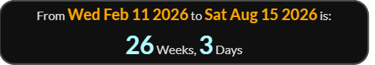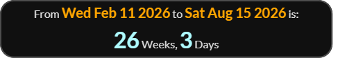 Between International Womens Day and the Virgin Mary's Birthday is exactly 26 weeks [0 days].