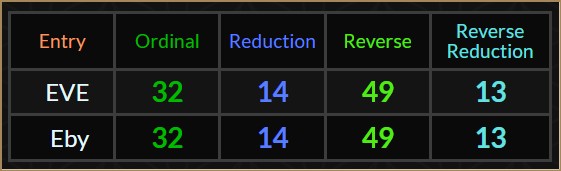 EVE = 137 [Satanic Cypher]. The 33rd prime number = 137