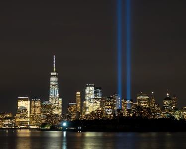 Tribute in Light installation—created to honor the Twin Towers—features 88