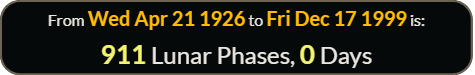 911 lunar phases + 1 day on the feast Dec 18, 1999.
