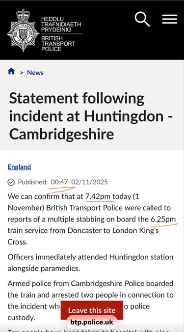 Media reporting of this incident is exactly 17 weeks 0 days after 7/7, 205