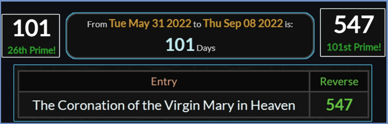 The traditional date for The Coronation of the Virgin Mary in Heaven is May 31.
