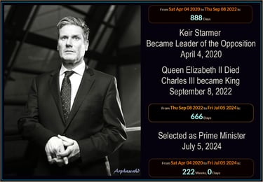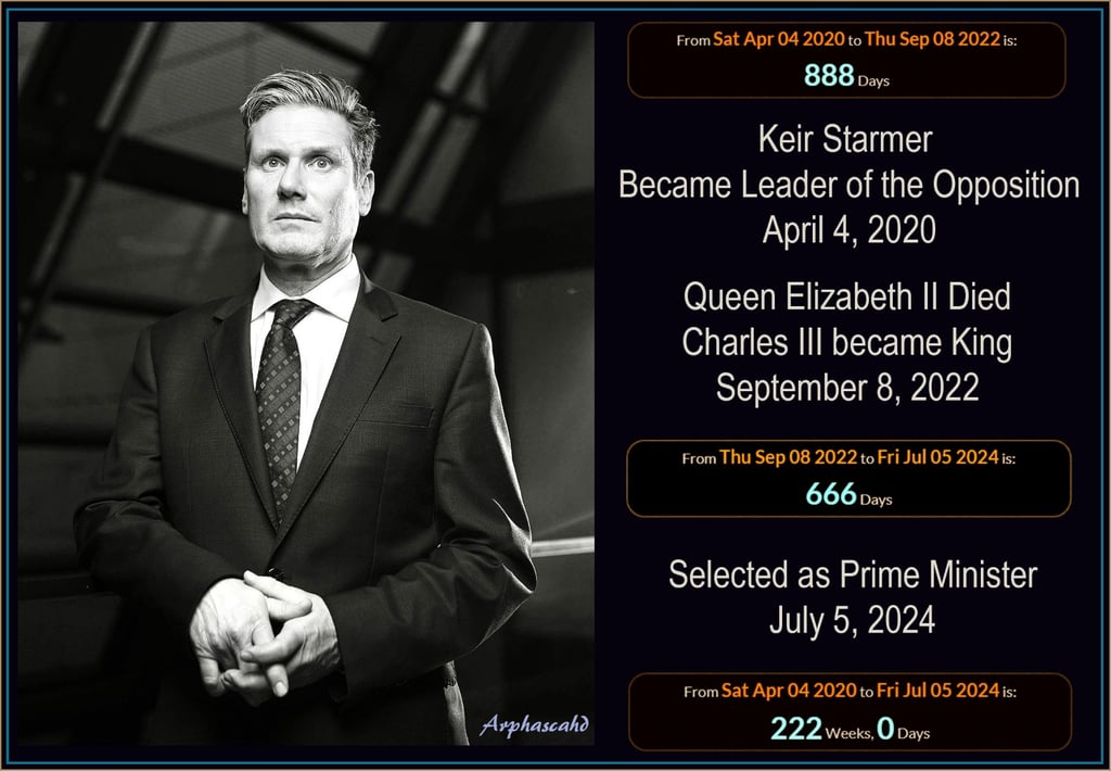 Starmer was selected 88 days between 2 solar eclipses on the 666th day of the reign of Charles III.