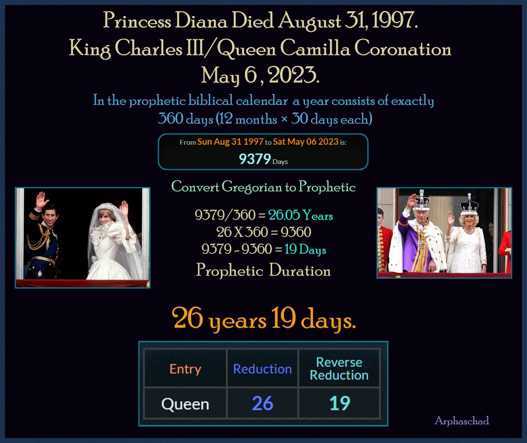 Between Princess Diana's Birth and this Funeral Anniversary entering the TWENTY SIXTH year are 62 years 26 days [Prophetic Calendar}