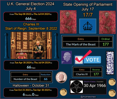 Keir Starmer was Selected on the 666th day of the Reign of Charles III, which is 666 days after Queen ELIZABETH II died.