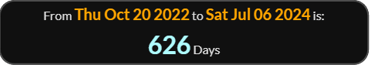 From Liz Truss announcement of Resignation to Starmers 1st full day as Prime Minister of the United Kingdom was 626 days