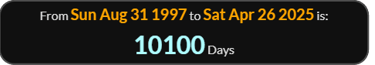 The Span can also be calculated as 26 years , 2 weeks, 6 days.