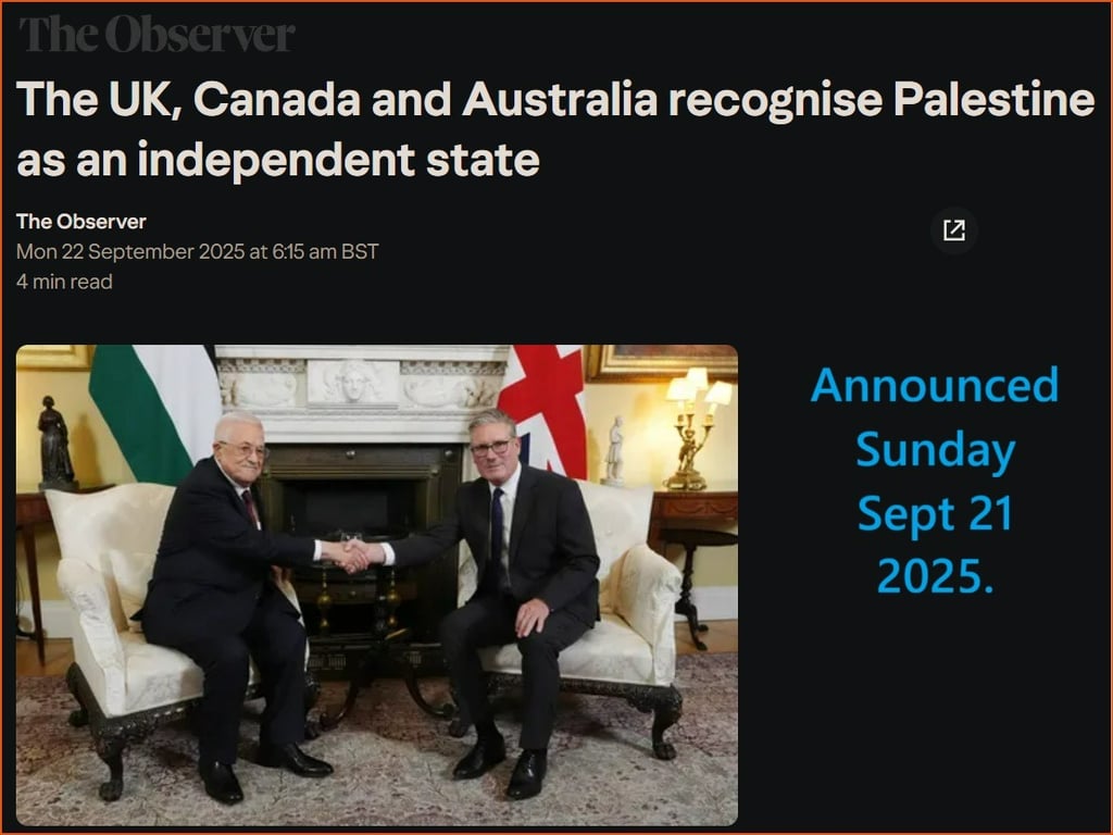 444 days later, declares recognition of a Palestinian State, September 21, 2025