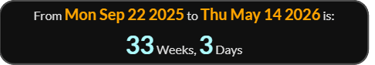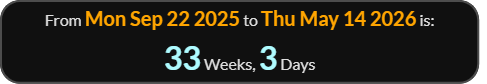 Israel's foundation May 14 is exactly 33 Weeks to the end of the year.