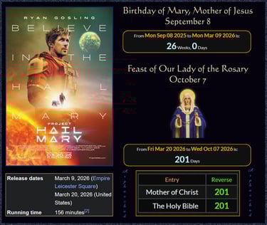 The USA, March 20, 2026 release of the film is also 262 days after the Vigil of The Immaculate Conception, 2025.