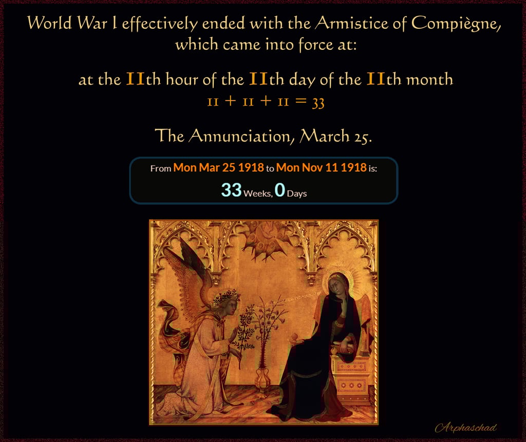 From the birth of the self proclaimed most evil man “Aleister Crowley” 10/12/1875 to the start of WW2, 9/1/1939 is 3333 weeks and 3 days.