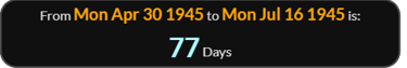 Hitler died April 30, 1945, 77 days before TRINTY Test for the Atomic Bomb.