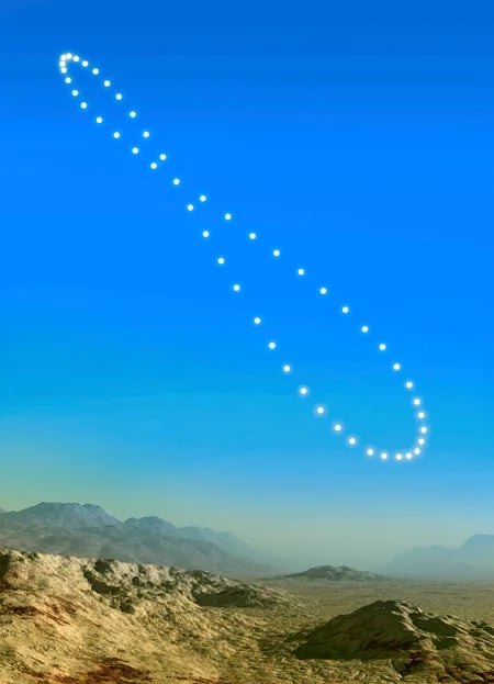 The Sun traces a figure‑8 shape in the sky over the course of a year. This pattern is called the solar analemma, and it appears when you photograph or plot the Sun from the same location at the same clock time every day for a year.